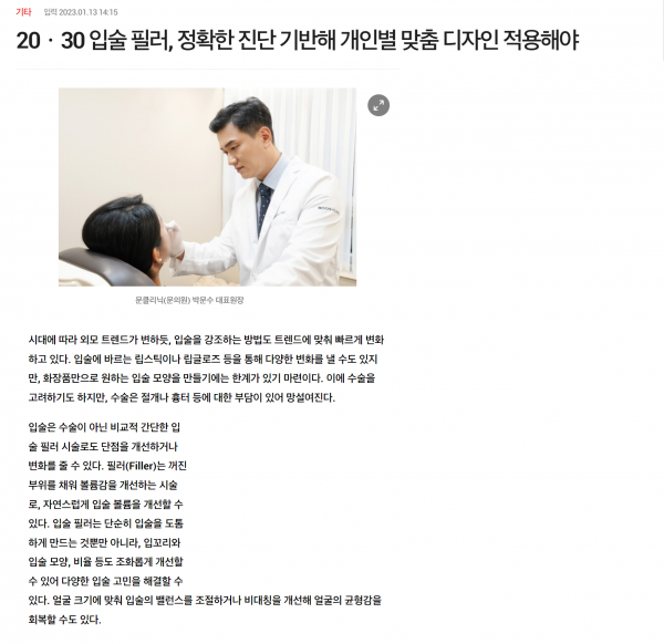 20ㆍ30 입술 필러, 정확한 진단 기반해 개인별 맞춤 디자인 적용해야